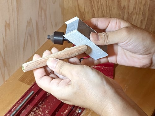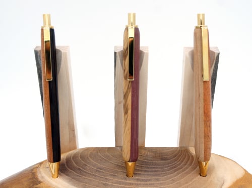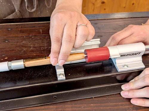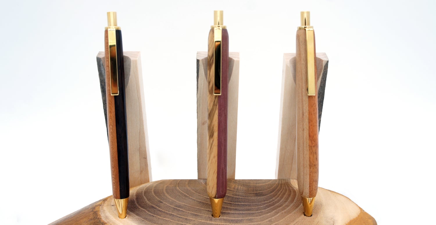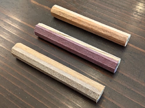 2種類の樹種を組み合わせた木軸から、お好みの形に削り出してボールペンを製作していただきます。