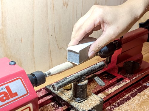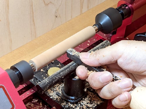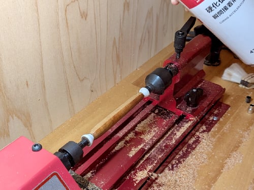 木旋盤で、お好みの太さや形に削り出していただきます。